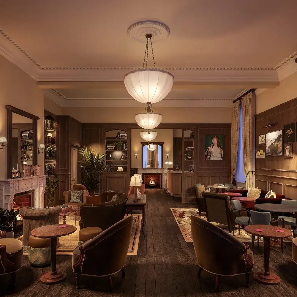 The Library Bar has its roots in the old Central Hotel on Exchequer Street, a Victorian building opened in 1887 and later refurbished in the early 1990s, when the upstairs drawing rooms were transformed into a bar lined with bookshelves, timber panelling, fireplaces, and deep armchairs. It quickly became known as one of Dublin’s quietest, most atmospheric hideaways—a place for slow pints, discreet conversations, and a calm, almost old-world charm that contrasted with the city’s louder pub scene. After the Central Hotel closed for redevelopment, the bar disappeared for several years, but its loyal following never stopped talking about it. Now, with the opening of The Hoxton Dublin, the Library Bar has been restored and revived, keeping the warmth, character, and intimate feel that made it a local favourite while introducing a refreshed, design-led iteration of a classic Dublin space.